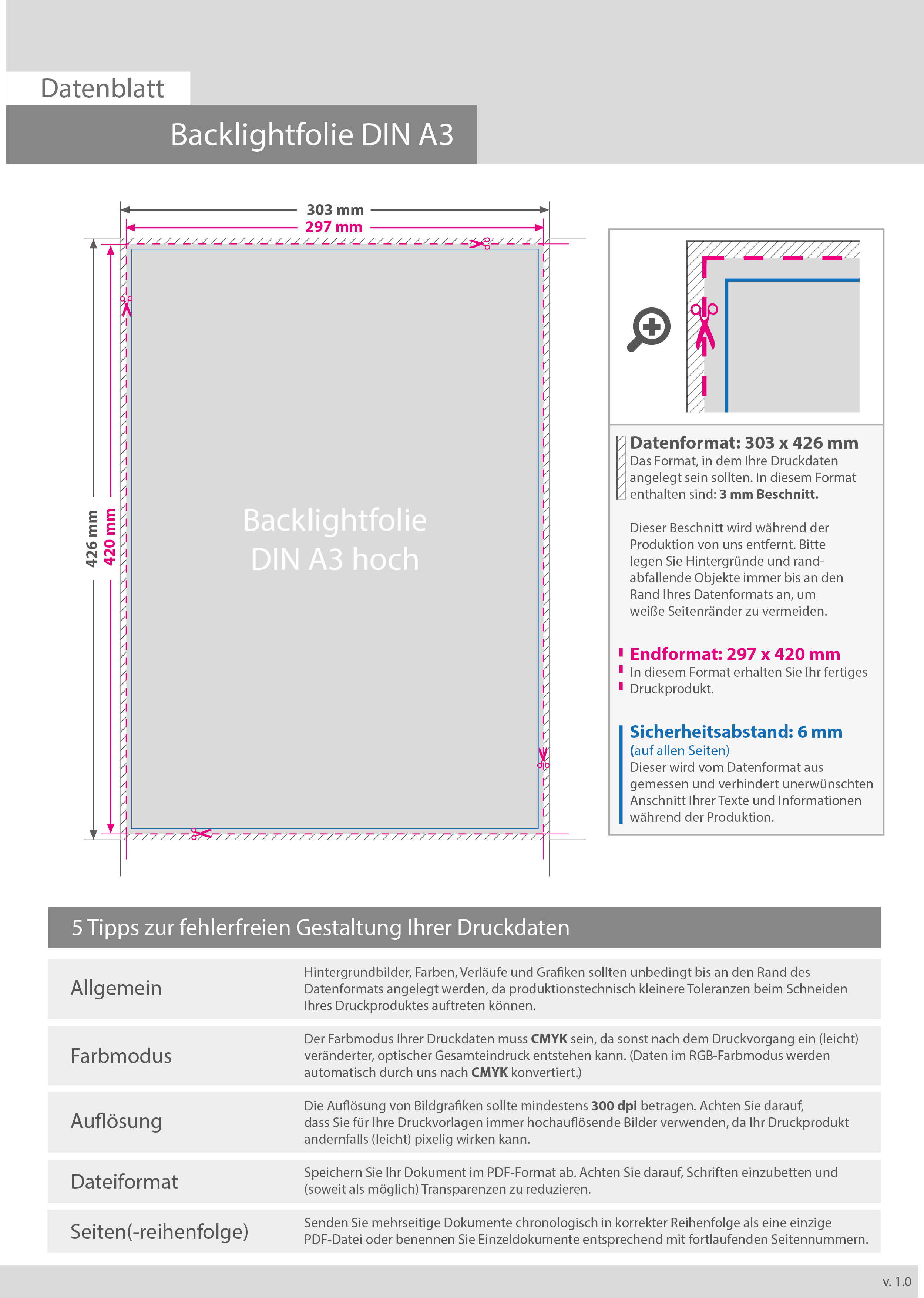 Hochwertige Backlightfolie, 4/0-farbig bedruckt, DIN A3