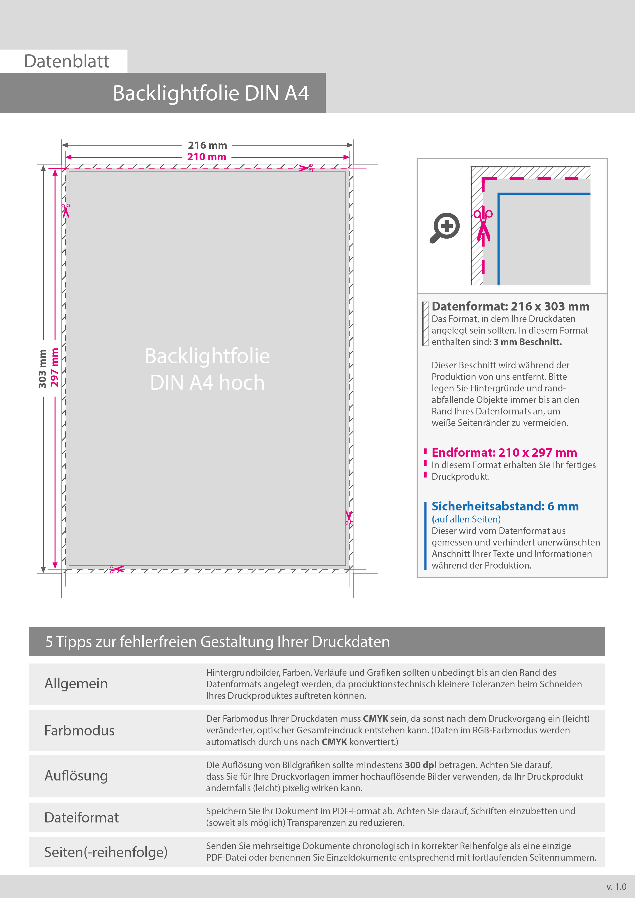 Hochwertige Backlightfolie, 4/0-farbig bedruckt, DIN A4